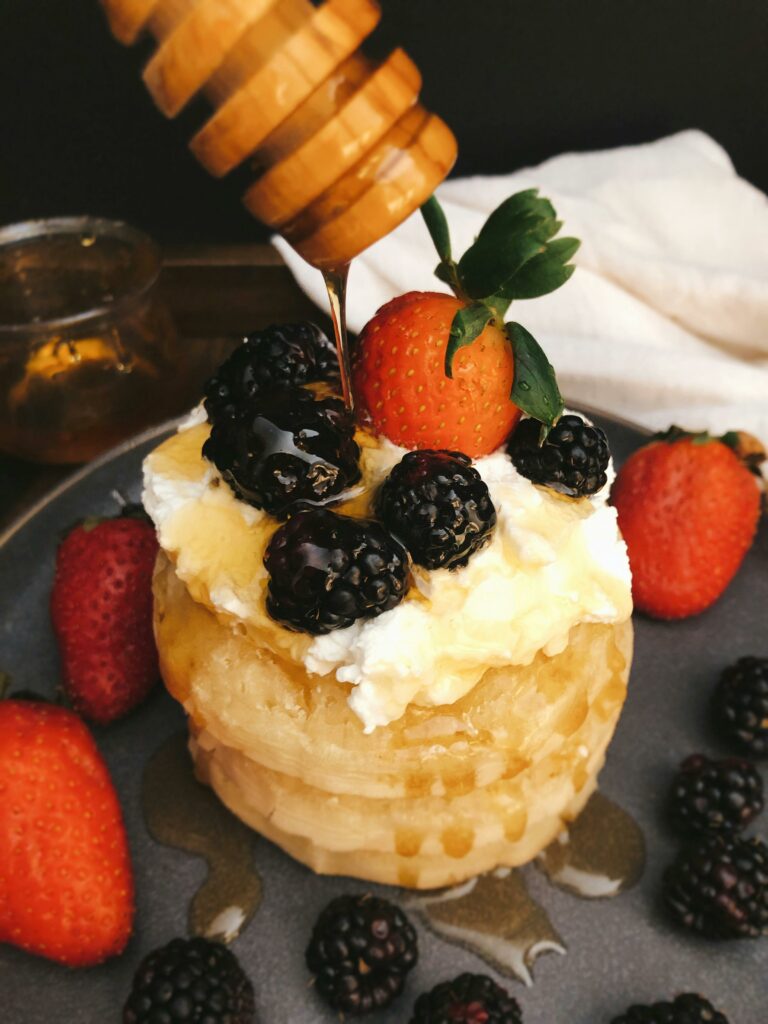 Honig kann als Topping für Eis, Pfannkuchen oder Obstsalate verwendet werden und sorgt für ein besonderes Geschmackserlebnis. Ein einfaches und leckeres Dessert ist griechischer Joghurt mit Honig und Nüssen. Er kann auch in Puddings, Torten und Cremes verwendet werden und verleiht ihnen eine feine Süße. Besonders beliebt sind Honig-Nuss-Desserts, bei denen Honig und verschiedene Nüsse wie Walnüsse, Mandeln oder Haselnüsse kombiniert werden. Diese Mischung eignet sich auch als Füllung für Gebäck oder als Topping für Desserts.